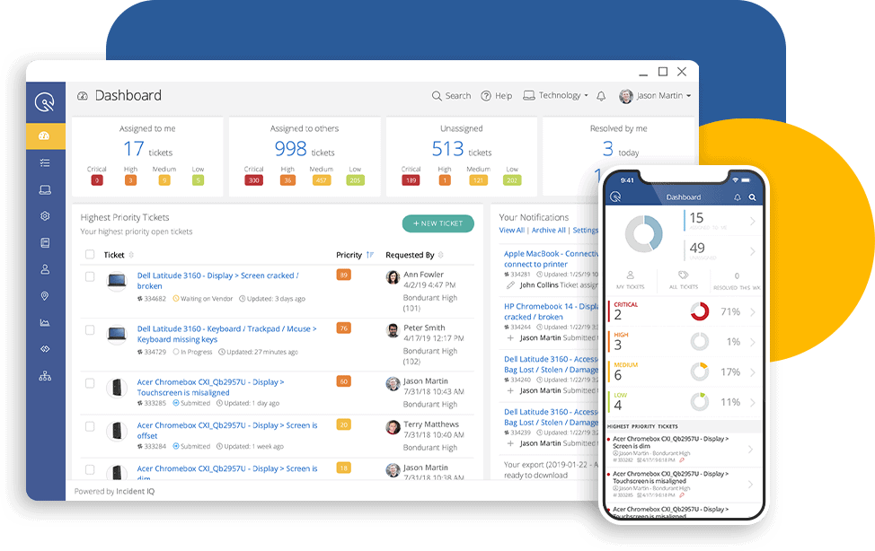 Incident IQ’s modules are purpose-built for K-12 educational institutions. It connects technology and automated operational workflows through an easy-to-use experience. With dashboards that provide visibility across assets, operations, and facilities and centralized communication, districts can stop chasing down information and start making real-time decisions that keep everything running smoothly.