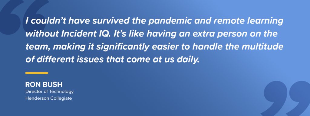 After evaluating other vendor offerings, Incident IQ was the clear choice for Henderson Collegiate. “The big thing that stuck out was the focus on K-12,” said Bush. “We just loved that was there compared to other platforms that were lacking a help desk platform, a unified asset management system, or a knowledge base.”
