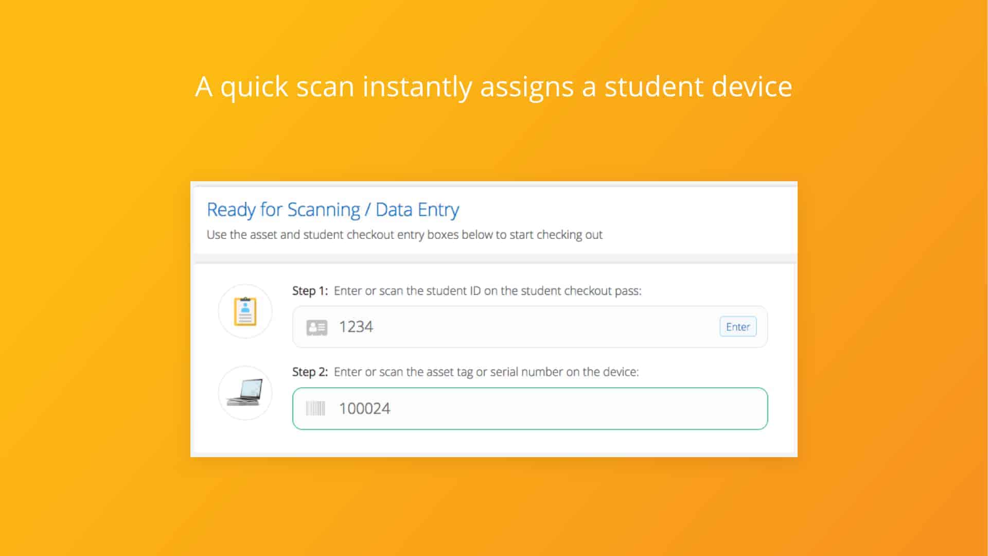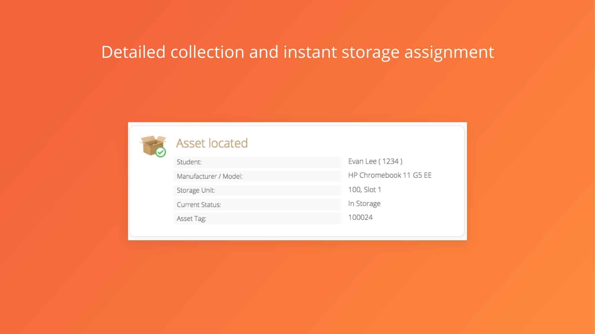 - Asset Check-in & Check-out: A quick scan instantly assigns a student device during distribution or a location during collection. Detailed repair and ownership history is maintained from initial assignment, during storage, through device re-issuing. Year-over-year collection and distribution are further expedited as devices can remain tied to their specific student owner.