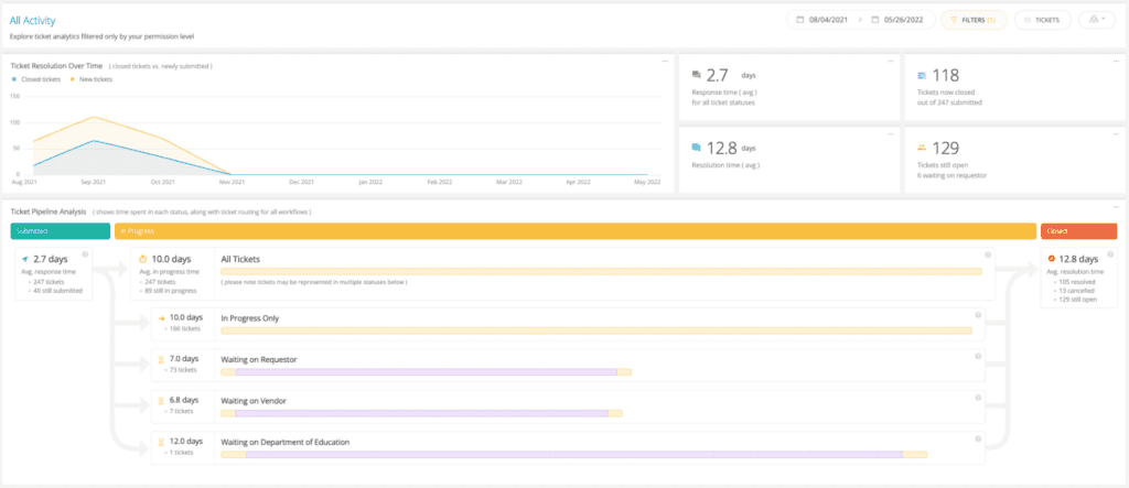 Detailed analytics are critical for monitoring the performance of your support workflows. Many K-12 districts have their own methods of generating reports—however, it’s often siloed off in a dark corner of their tech stack.