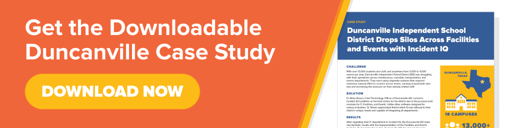 Unification changes everything — Incident IQ has empowered Duncanville ISD to optimize K-12 operations and create workflows that work seamlessly, improving both the efficiency and impact of their service delivery.”